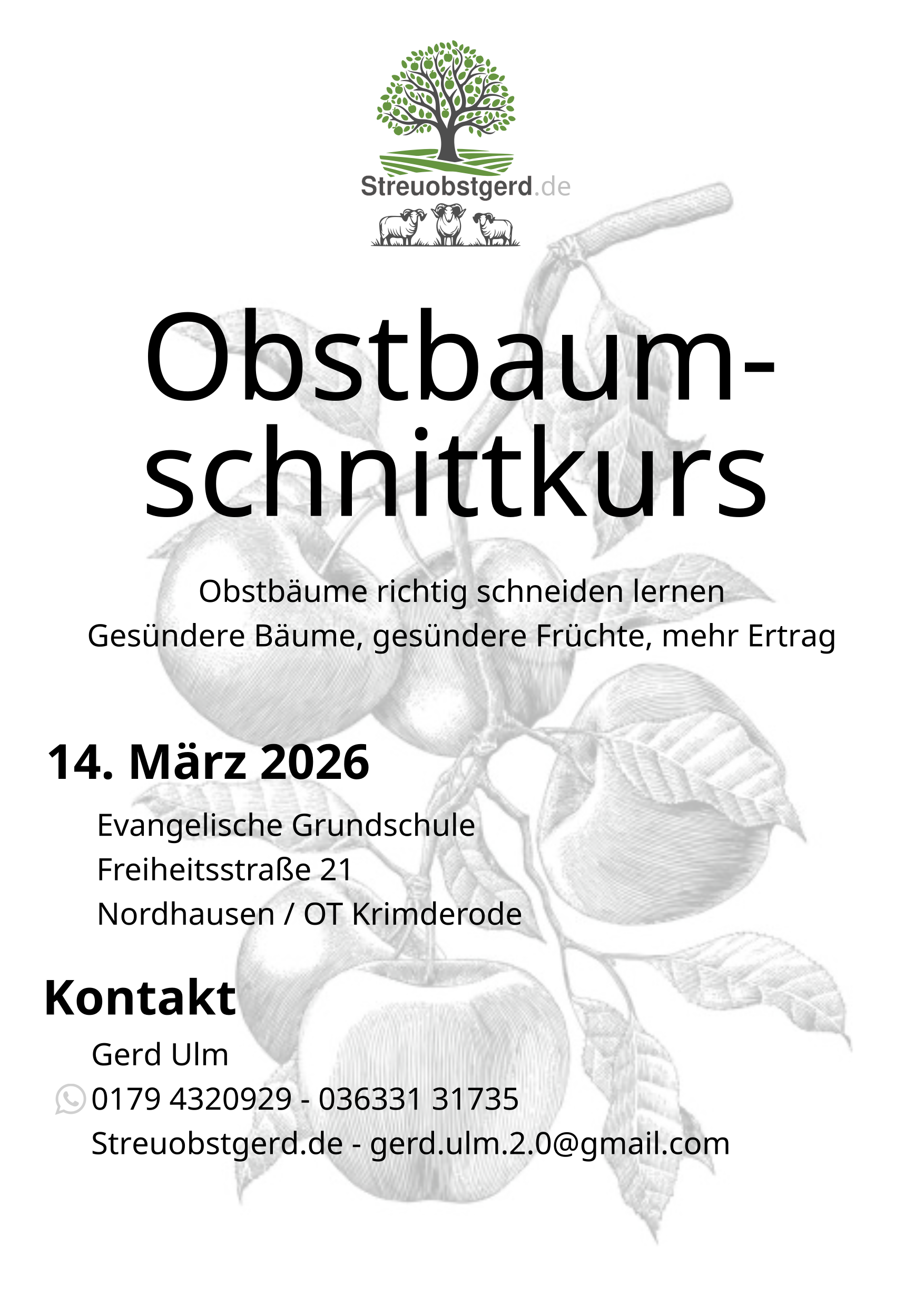 Dieser Termin ist besonders interessant für die, die nicht nur lernen sondern sich auch sozial engagieren wollen. Im Praxisteil pflegen wir zusammen die Bäume der Grundschule in Krimderode. Wer also was lernen und dabei Gutes tun will, sollte sich anmelden!